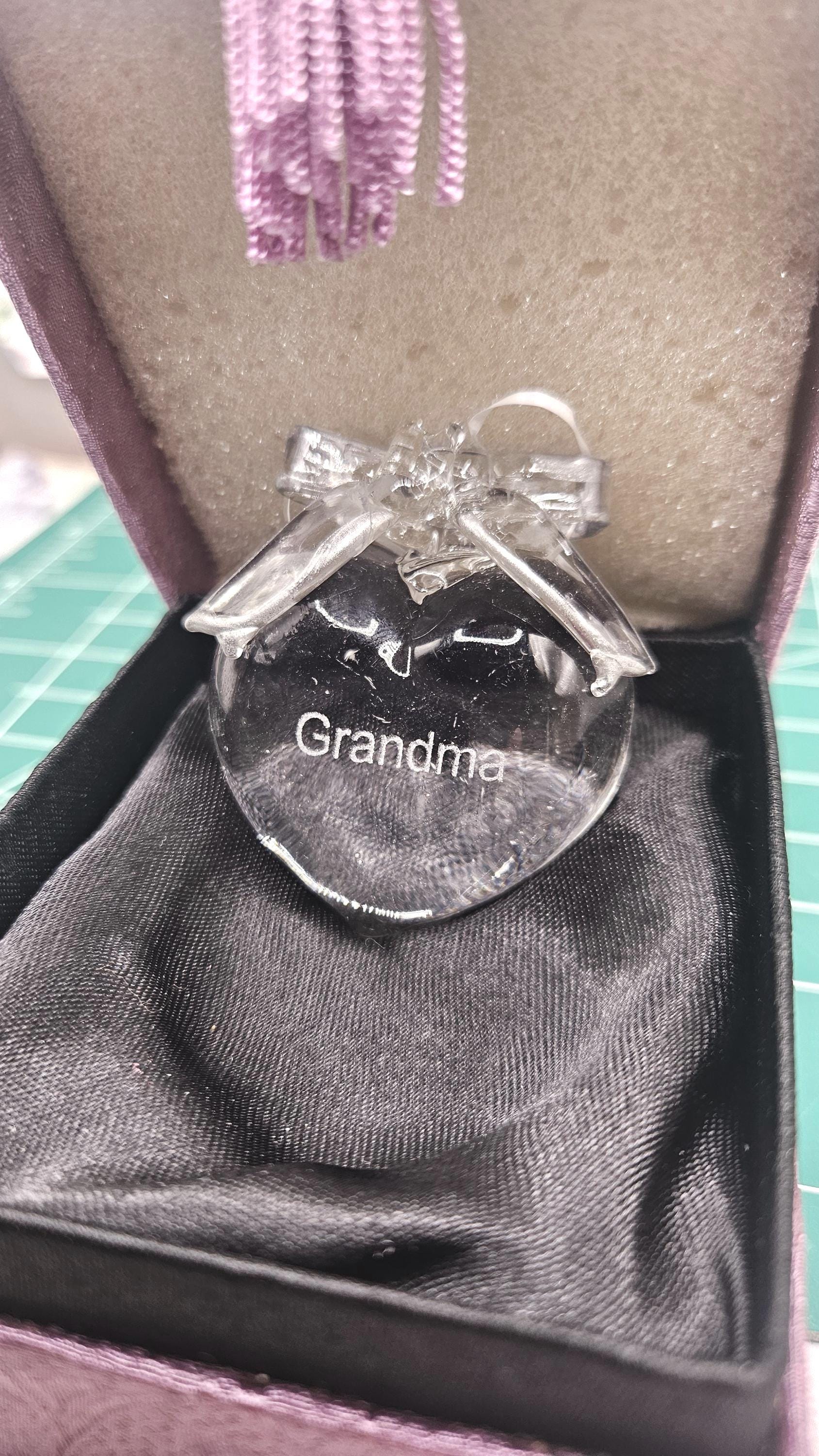 One-of-a-kind, vintage crystal ornament made by a craftsperson. The ornament is in the shape of a heart and comes in its original box. This unique piece would make a thoughtful gift for a special person in your life, especially a grandmother or any beloved elder.